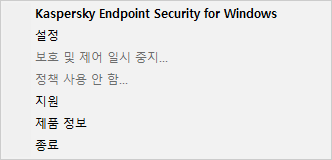 Kaspersky Endpoint Security는 정책에서 자물쇠() 표시가 없는 모든 보호 및 제어 구성 요소의 작동을 일시 중지합니다. 이 작업을 수행하기 전에 Kaspersky Security Center 정책을 비활성화하는 것이 좋습니다.