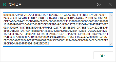 임시 암호를 사용하여 회사 네트워크 외부의 개별 컴퓨터에게 Kaspersky Endpoint Security에 대한 임시 접근를 허용할 수 있습니다. 사용자가 KLAdmin 계정 자격 증명을 얻지 않고 차단된 동작을 수행할 수 있도록 허용하기 위해 필요합니다. 임시 암호를 사용하려면 해당 컴퓨터가 Kaspersky Security Center에 추가되어야 합니다.