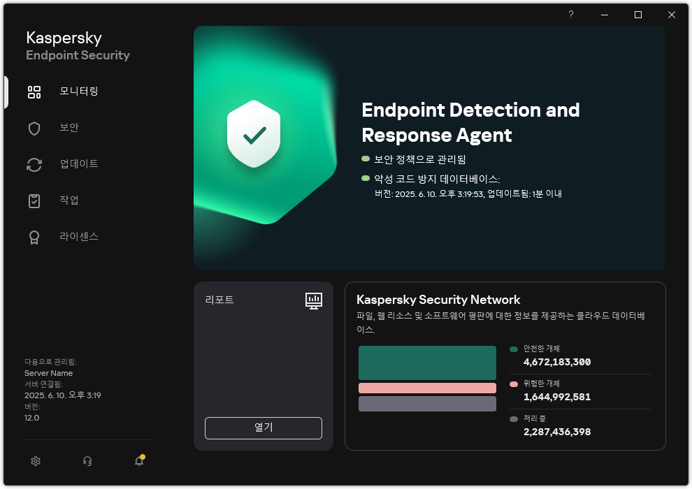 결과적으로 EDR Agent가 사용자 컴퓨터에 설치됩니다. 애플리케이션의 인터페이스를 사용할 수 있으며 알림 영역에
