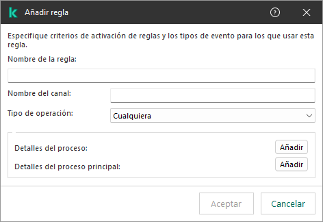 Kaspersky Endpoint Security combina criterios de activación de reglas con un operador lógico AND.