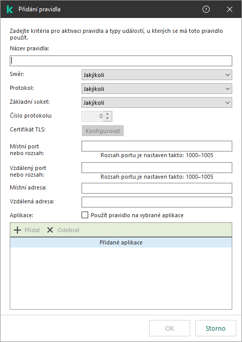 Kaspersky Endpoint Security kombinuje kritéria aktivující pravidlo logickým ANO.