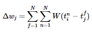 Formula for calculating the change in synapse weight based on the AdditiveSTDPDeltaSynapse model