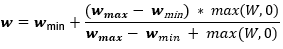 The synapse weight determines the value of the synaptic impact sent to the postsynaptic population and is associated with the value of the synaptic resource by the formula shown below, where: