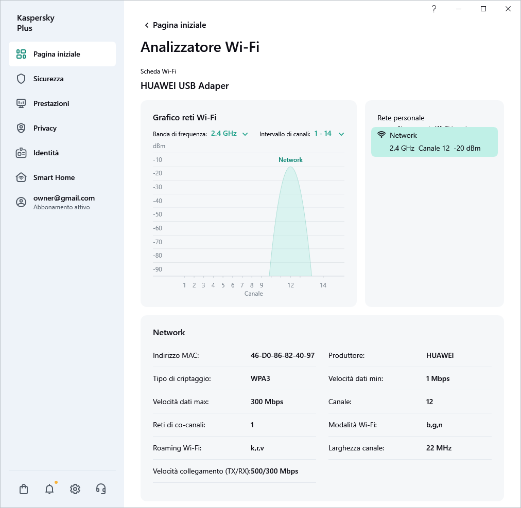 Suggerimento: se il segnale Wi-Fi è debole, provare a posizionare il router in un punto diverso all'interno dell'abitazione o ad avvicinare il dispositivo al router, quindi aprire la sezione Analizzatore Wi-Fi per ottenere una stima della potenza del segnale Wi-Fi.