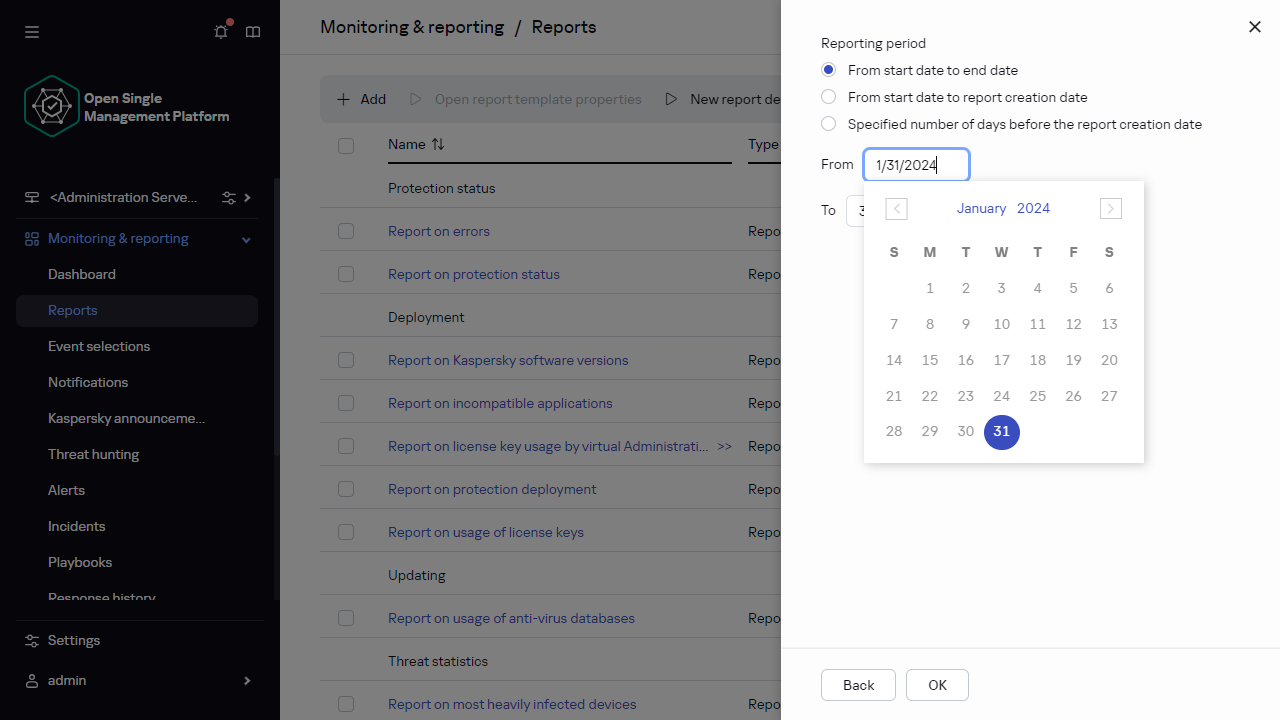 On the Reporting period step of the wizard, specify the report period. Available values are as follows: