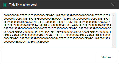 U kunt een tijdelijk wachtwoord gebruiken als u tijdelijke toegang tot Kaspersky Endpoint Security wilt verlenen aan een enkele computer buiten het bedrijfsnetwerk. Dit is noodzakelijk opdat de gebruiker een geblokkeerde actie kan uitvoeren zonder de KLAdmin-accountgegevens. Voor het gebruik van een tijdelijk wachtwoord moet de computer worden toegevoegd aan Kaspersky Security Center.