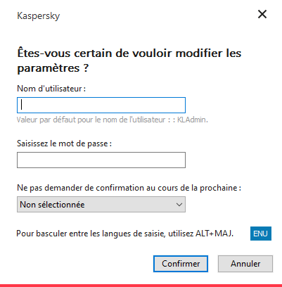 Sollicitation du mot de passe d'accès à Kaspersky Endpoint Security