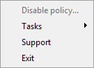 Als een Kaspersky Security Center-beleid dat is geconfigureerd om de vereenvoudigde programma-interface weer te geven wordt toegepast op een clientcomputer waarop Kaspersky Endpoint Security is geïnstalleerd, is het hoofdvenster van het programma niet beschikbaar op deze clientcomputer. Klik rechts om het contextmenu van het Kaspersky Endpoint Security-pictogram te openen (zie afbeelding hieronder). U ziet de volgende opties: