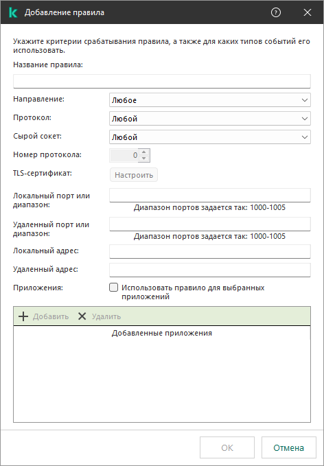 Kaspersky Endpoint Security применяет критерии срабатывания по правилу логического И.