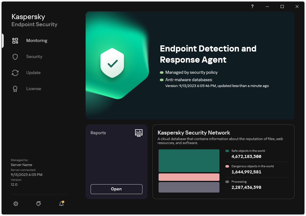 As a result, EDR Agent is installed on the user's computer. You can use the interface of the application and an icon of the application is displayed in the notification area