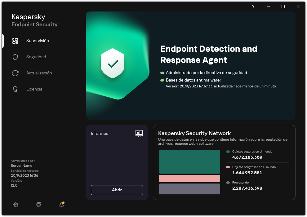 Kaspersky Endpoint Security en la configuración del Endpoint Detection and Response Agent (EDR Agent) para las soluciones Kaspersky Managed Detection and Response y Kaspersky Anti Targeted Attack Platform (EDR) se instala de la misma manera.