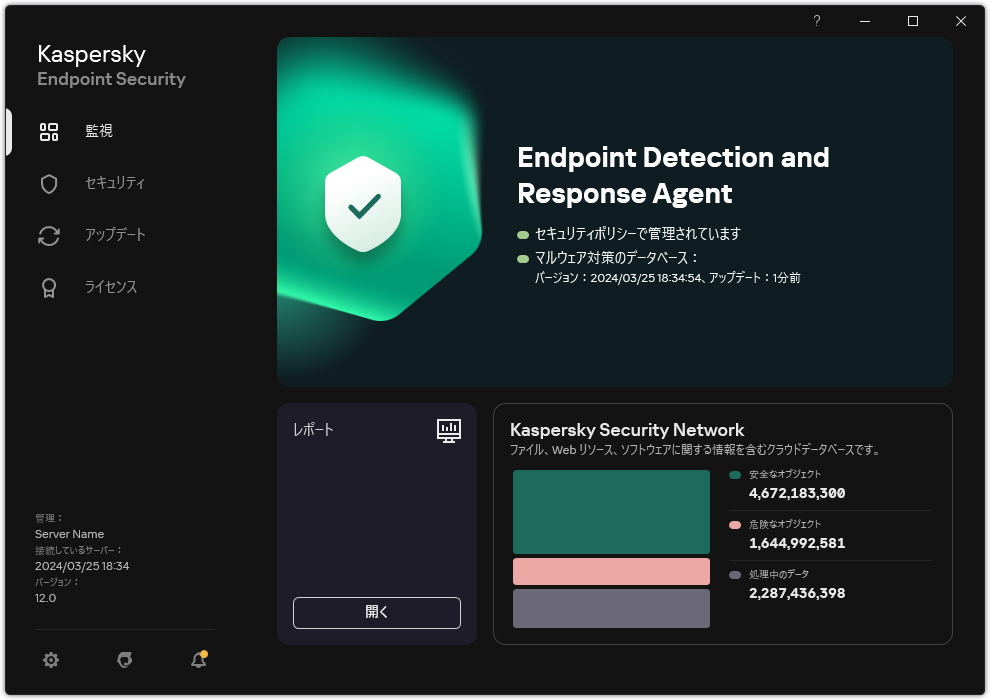 Kaspersky Managed Detection and Response および Kaspersky Anti Targeted Attack Platform (EDR) ソリューション用の Endpoint Detection and Response Agent (EDR Agent) 設定の Kaspersky Endpoint Security も、同様にインストールします。