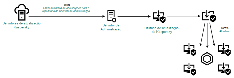 O pacote de atualização é distribuído a computadores clientes pela tarefa Atualização do Kaspersky Endpoint Security. Você pode criar um número ilimitado de tarefas de atualização para cada grupo de administração.