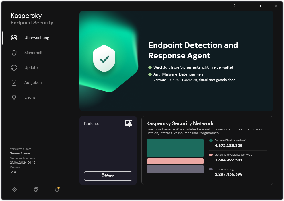 Hauptfenster des EDR-Agenten