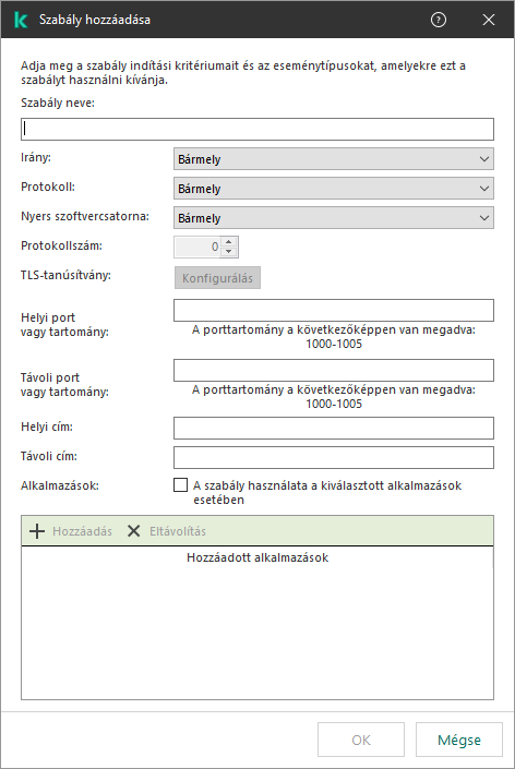 A Kaspersky Endpoint Security a szabálykiváltó feltételeket a logikai AND jelekkel kombinálja.