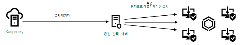 Kaspersky Security Center에서는 기업 컴퓨터에 애플리케이션을 설치하기 위한 Kaspersky 소프트웨어 배포 마법사를 제공합니다. Kaspersky 소프트웨어 배포 마법사에는 다음과 같은 주요 동작을 실행할 수 있습니다: