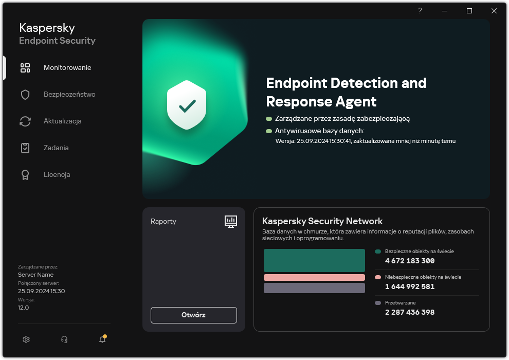 Kaspersky Endpoint Security w konfiguracji Endpoint Detection and Response Agent (EDR Agent) dla rozwiązań Kaspersky Detection and Response instaluje się w ten sam sposób.