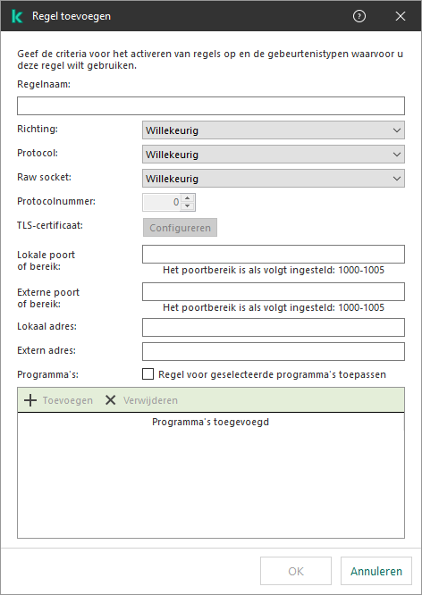Kaspersky Endpoint Security combineert activeringscriteria van regel met een logische EN.