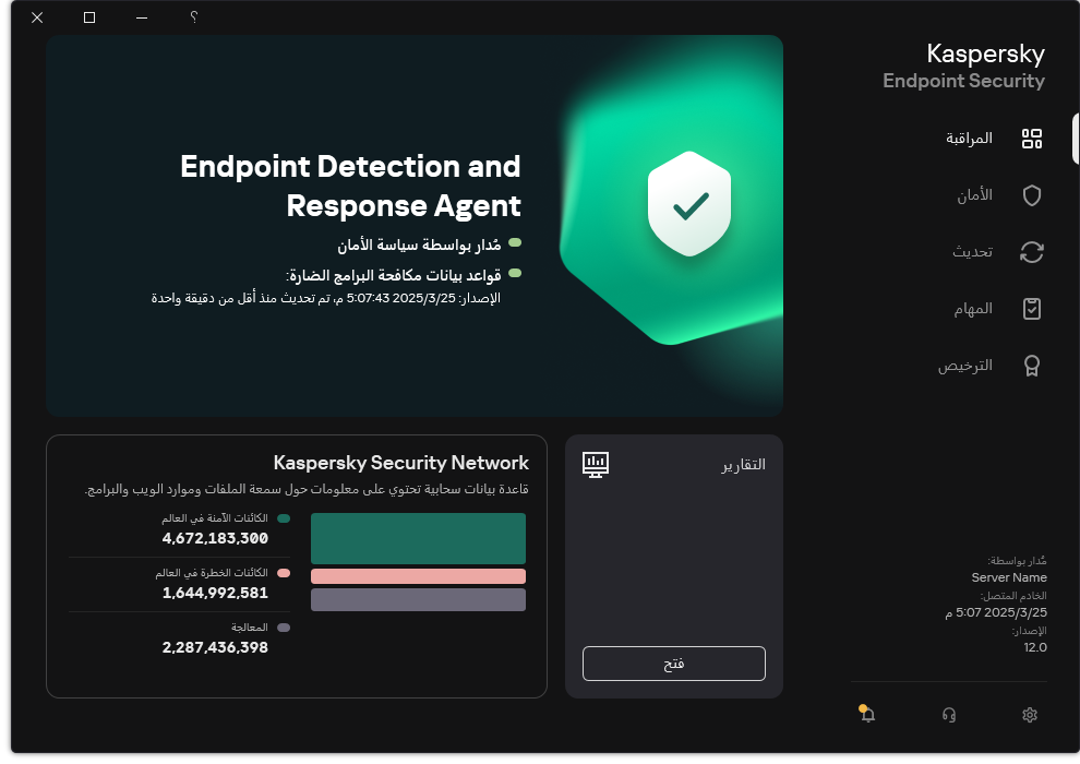 نتيجة لذلك، يتم تثبيت EDR Agent على الكمبيوتر. ويمكنك استخدام واجهة التطبيق ويتم عرض أيقونة التطبيق في منطقة الإخطارات