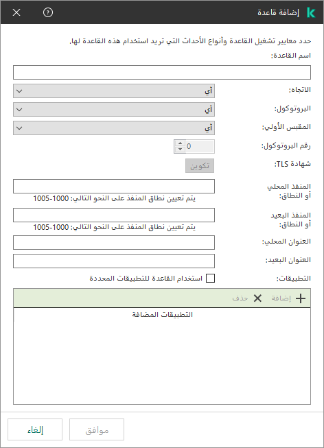 يجمع Kaspersky Endpoint Security بين معايير تشغيل القاعدة وAND المنطقية.
