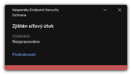 Pokud aplikace Kaspersky Endpoint Security zjistí pokus o útok na síť v počítači uživatele, zablokuje všechna síťová připojení s útočícím počítačem. Kaspersky Endpoint Security vytváří události Network attack detected. Událost obsahuje informace o útočícím počítači: IP a MAC adresy.