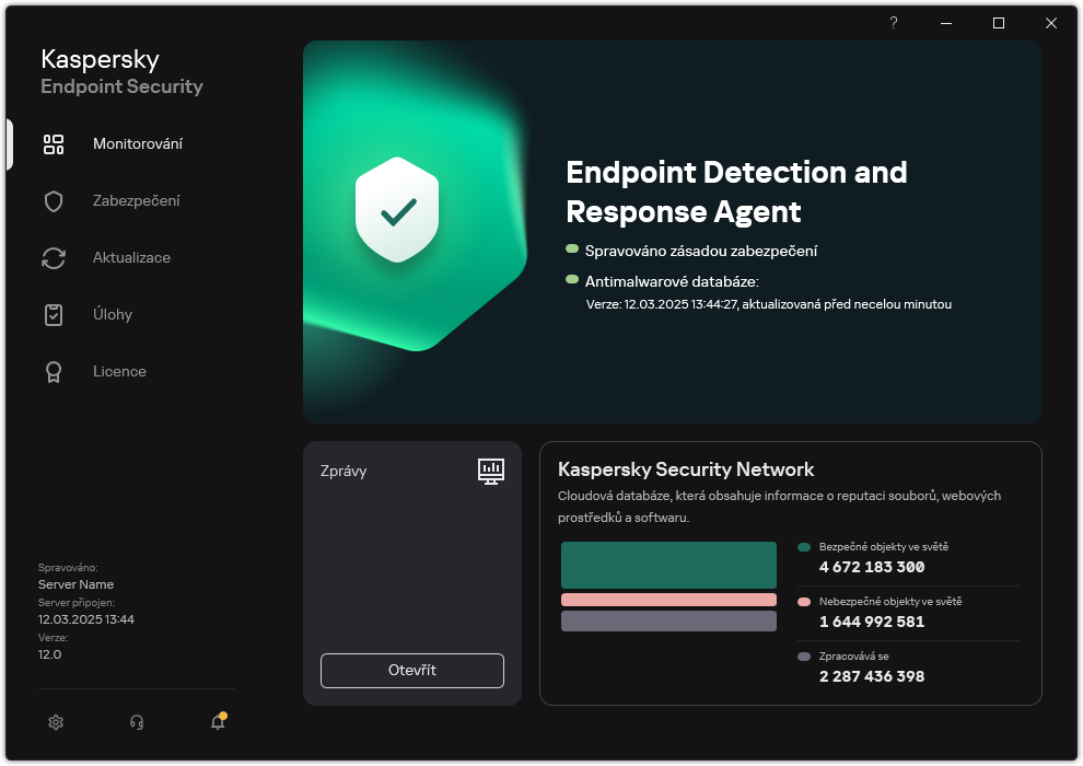 Kaspersky Endpoint Security v konfiguraci Endpoint Detection and Response Agent (EDR Agent) pro řešení Kaspersky Detection and Response se instaluje stejným způsobem.