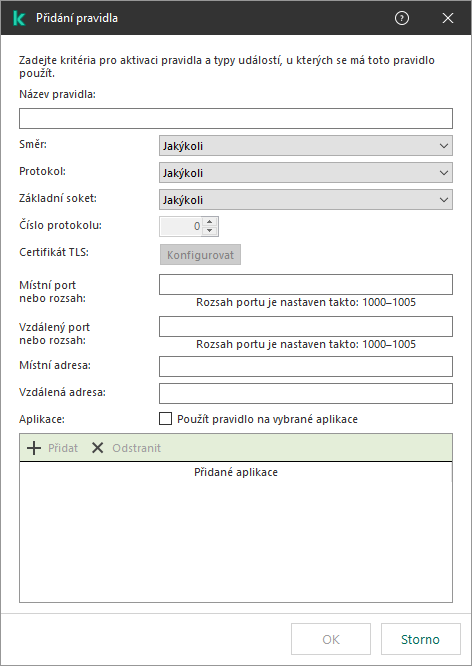 Kaspersky Endpoint Security kombinuje kritéria aktivující pravidlo logickým ANO.