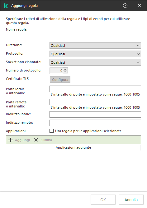 Kaspersky Endpoint Security combina i criteri di attivazione delle regole con un AND logico.