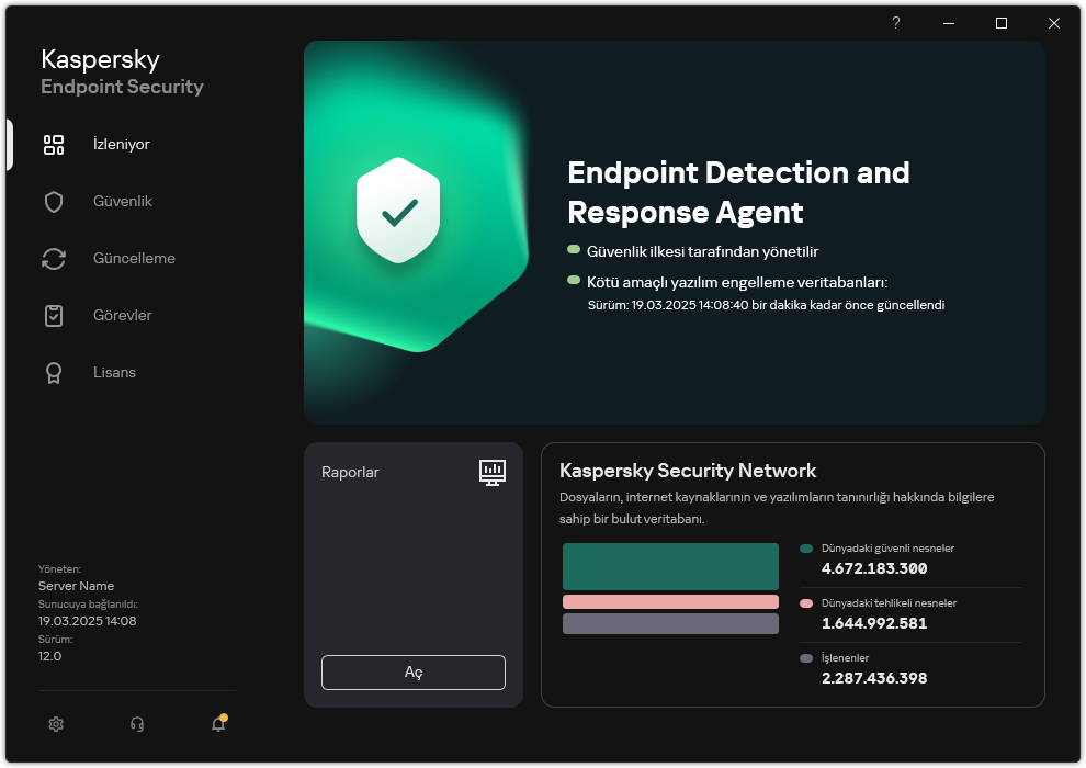 Kaspersky Endpoint Security, Kaspersky Detection and Response çözümleri için Endpoint Detection and Response Agent (EDR Agent) yapılandırmasında aynı şekilde yüklenir.