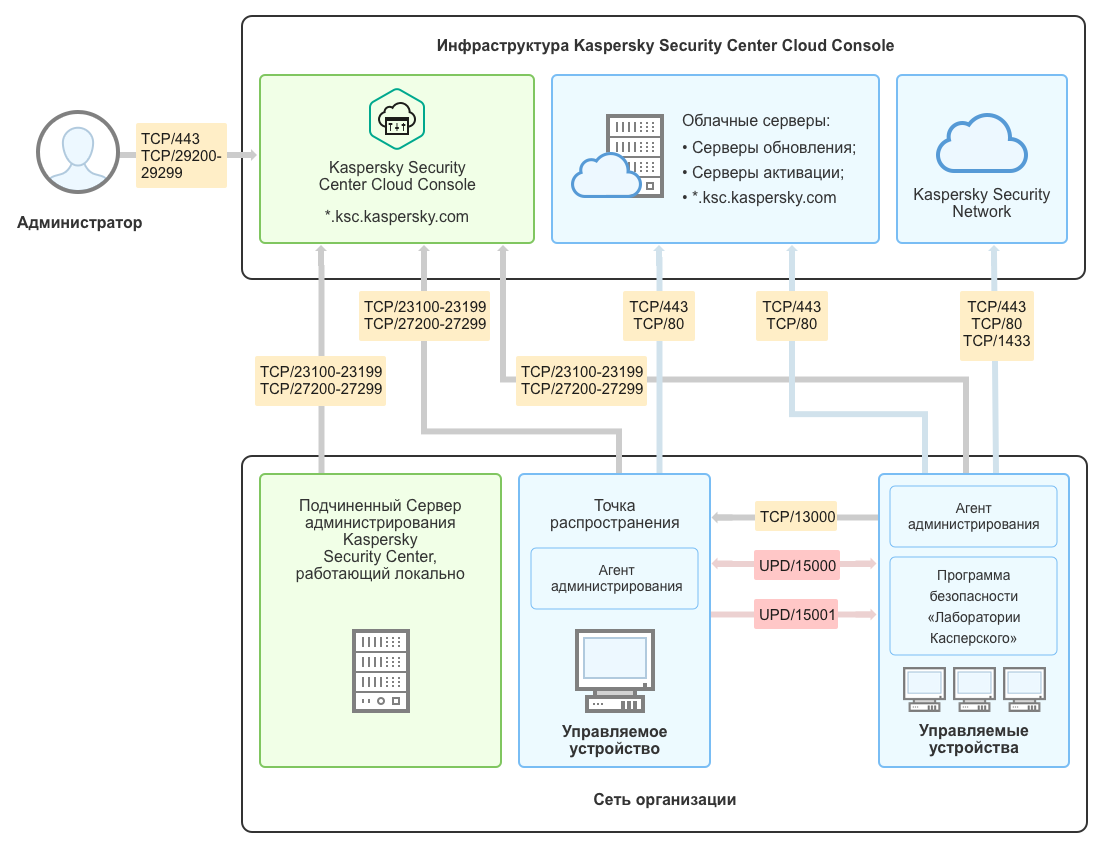 Инфраструктура Kaspersky Security Center Cloud Console содержит: