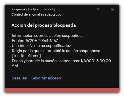 Si una regla no se activa en lo absoluto durante el período de aprendizaje, el componente considerará que las acciones asociadas con la regla son atípicas. En consecuencia, Kaspersky Endpoint Security bloqueará cualquier acción vinculada con esa regla.