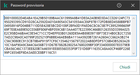 È possibile utilizzare una password provvisoria per concedere l'accesso provvisorio a Kaspersky Endpoint Security per un singolo computer all'esterno della rete aziendale. Questo è necessario per consentire all'utente di eseguire un'azione bloccata senza ottenere le credenziali dell'account KLAdmin. Per utilizzare una password provvisoria, il computer deve essere aggiunto a Kaspersky Security Center.