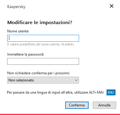 Richiesta della password di accesso a Kaspersky Endpoint Security