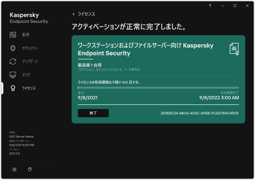 メインウィンドウで、[ライセンス]セクションに移動します(下の図を参照)。