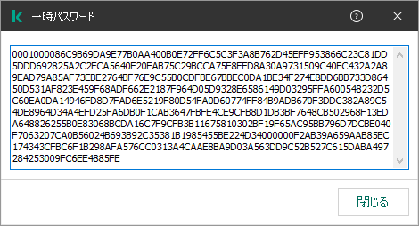 ウィンドウが開き、一時パスワードが表示されます(以下の図を参照)。