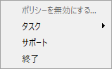 Kaspersky Endpoint Security がインストールされたクライアントコンピューターに対し、簡略化したアプリケーションインターフェイスを表示するよう設定された Kaspersky Security Center ポリシーが適用されている場合、そのクライアントコンピューターでは製品のメインウィンドウが使用できません。Kaspersky Endpoint Security のアイコン(以下の図を参照)を右クリックすると、次の項目を含むコンテキストメニューが表示されます: