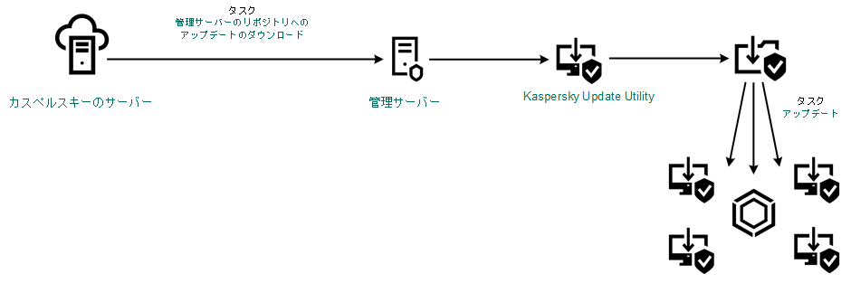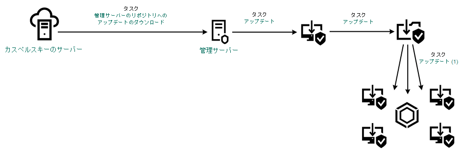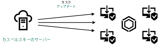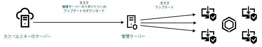Kaspersky Endpoint Security では、定義データベースとソフトウェアモジュールのアップデート方法として、次の方法をサポートしています: