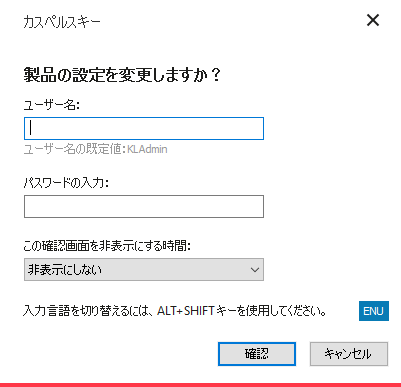 Kaspersky Endpoint Security にアクセスするパスワードの入力