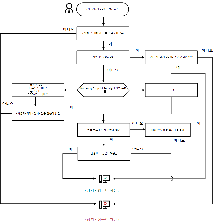 Kaspersky Endpoint Security는 사용자가 장치를 컴퓨터에 연결한 후 장치에 대한 접근을 허용할지 여부를 결정합니다(아래 그림 참조).