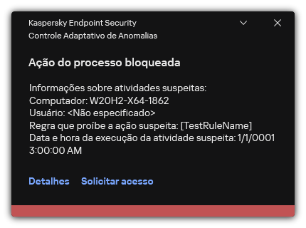 Se uma regra não foi acionada durante o treinamento, o Controle Adaptativo de Anomalias considerará as ações associadas a essa regra como incomuns. O Kaspersky Endpoint Security irá bloquear todas as ações associadas a essa regra.
