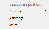 Meniu contextual pentru pictograma aplicației atunci când este afișată interfața simplificată