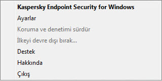 Bilgisayar koruması ve denetimi duraklatıldığında, Kaspersky Endpoint Security’nin tüm koruma ve denetim bileşenleri bir süre devre dışı bırakılır.