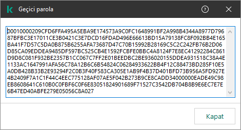 Kurumsal ağın dışındaki bir bilgisayar için Kaspersky Endpoint Security'ye geçici erişim vermek amacıyla geçici bir parola kullanılabilir. Bu, kullanıcının KLAdmin hesabı kimlik bilgilerini almadan engellenen bir eylem gerçekleştirmesini sağlamak için gereklidir. Geçici bir parola kullanmak için bilgisayar Kaspersky Security Center'a eklenmelidir.