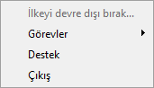 Basitleştirilmiş uygulama arabirimi ekranı için yapılandırılan Kaspersky Security Center ilkesi, Kaspersky Endpoint Security'nin yüklü olduğu bir istemci bilgisayara uygulanıyorsa bu istemci bilgisayarda ana uygulama penceresi kullanılamaz. Aşağıdakileri içeren Kaspersky Endpoint Security simgesinin (aşağıdaki resme bakın) bağlam menüsünü açmak için sağ tıklayın: