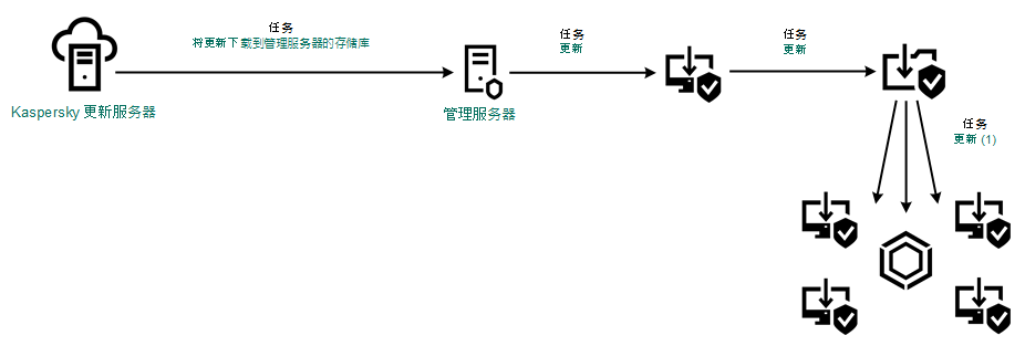 更新包由 Kaspersky Endpoint Security 的“更新”任务分发到客户端计算机。您可以为每个管理组创建无限数量的更新任务。