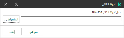 أدخل تجزئة الملف أو حدد الملف بالنقر فوق الزر استعراض.
