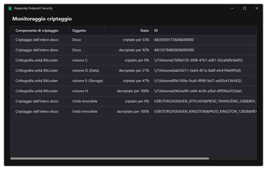 È possibile utilizzare lo strumento Monitoraggio criptaggio per controllare il processo di criptaggio o decriptaggio del disco nel computer di un utente. È possibile eseguire lo strumento Monitoraggio criptaggio dalla finestra principale dell'applicazione.