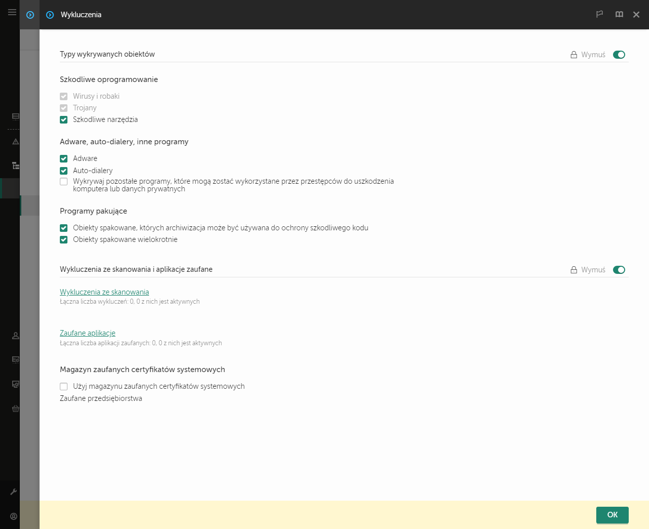 Ustawienia wykluczeń