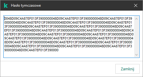 Hasło tymczasowe może zostać użyte do nadania tymczasowego dostępu do Kaspersky Endpoint Security dla pojedynczego komputera poza siecią firmową. Jest to konieczne do zezwolenia użytkownikowi na wykonanie zablokowanego działania bez uzyskania danych uwierzytelniających konta KLAdmin. Aby użyć hasła tymczasowego, komputer musi zostać dodany do Kaspersky Security Center.