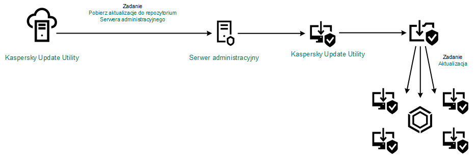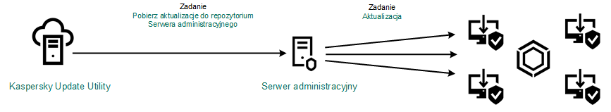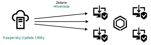 Pakiet aktualizacji jest rozsyłany na komputery klienckie przez zadanie Aktualizacja programu Kaspersky Endpoint Security. Dla każdej grupy administracyjnej możesz utworzyć nieograniczoną liczbę zadań aktualizacji.